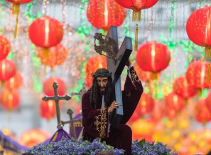 Popular Piety is one aspect of the cultural and religious diversity in the praxis of Catholic faith. Catholic processions, pilgrimages, rosaries, novenas, way of the cross, holy medals, scapulars and other contextual customs and rites were coalesced in the standard celebration of the sacraments all over the world before Vatican II.[1] Macau, a former Portuguese colony, embeds the rich value of popular piety inculturated contextually as an expression of religious worship toward God.[2] One typical European Catholic form of popular piety is revealed in an overnight vigil procession of the Senhor Bom Jesus dos Passos (The Passion of Our Lord God Jesus) to honor Christ in his agony during Lent. This paper focuses on a case study of a particular religious pilgrimage interweaving the busy streets in Macau, the Procession of the Passion of Our Lord God Jesus,[3] which, I argue, acts as an agent to transform and enliven the secular landscape of the streets of Macau into a temporary sacred space, and demonstrate how a living devotion and worship unites the interethnic, interreligous lived experience of the faithful in a contemporary society.